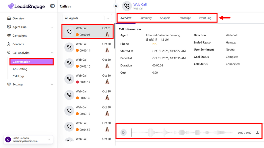 Access and review all call interactions in one place for streamlined tracking and analysis.