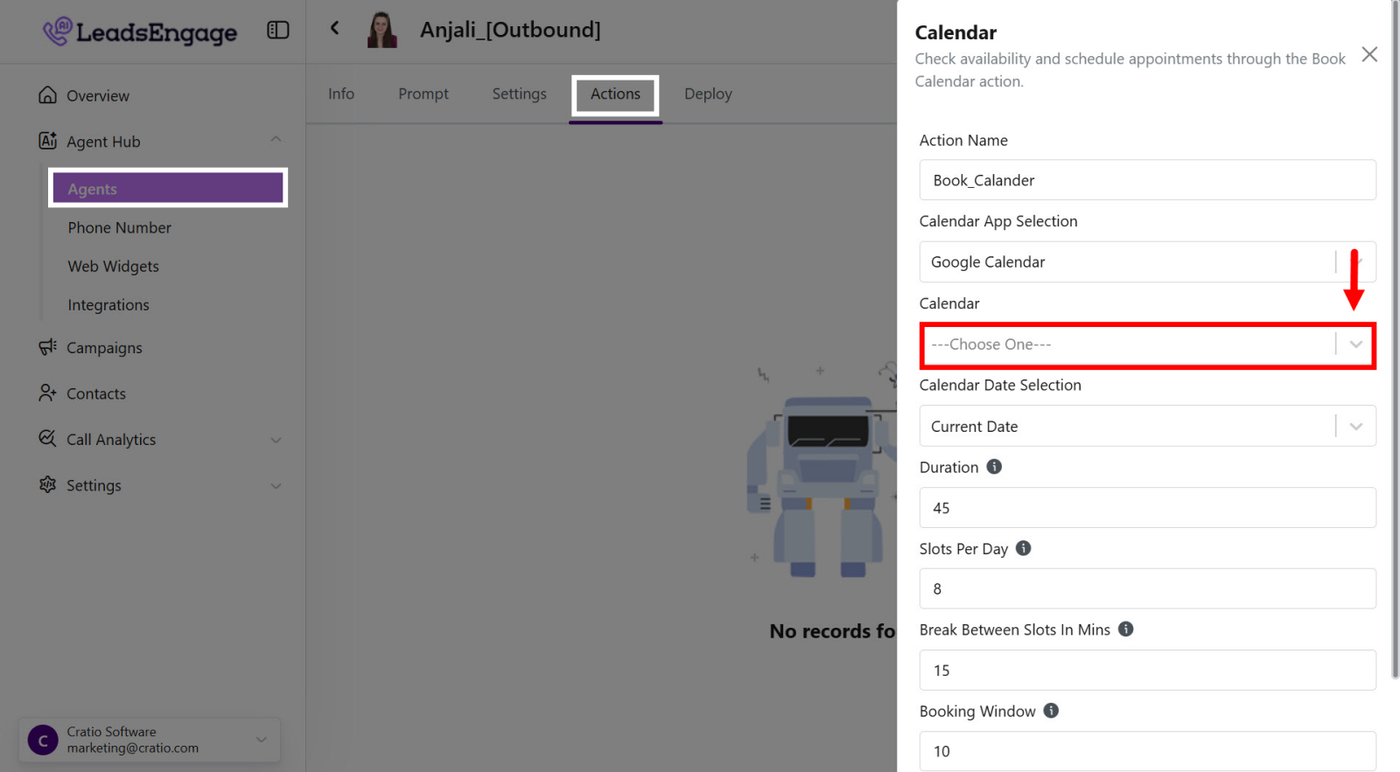 The Book Calendar Action enables your voice agent to automatically check calendar availability and book appointments for callers. If the requested time is unavailable, the agent will suggest alternative time slots. This helps streamline bookings and improve the caller experience without human intervention.