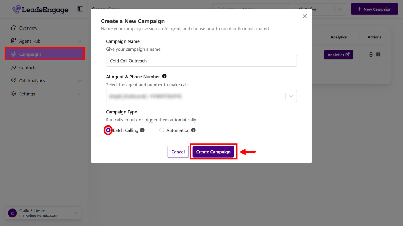 An Outbound Call Campaign works like a bulk email campaign — but with real-time voice conversations powered by AI. Use it to engage, qualify, and convert large volumes of contacts at scale, automatically.