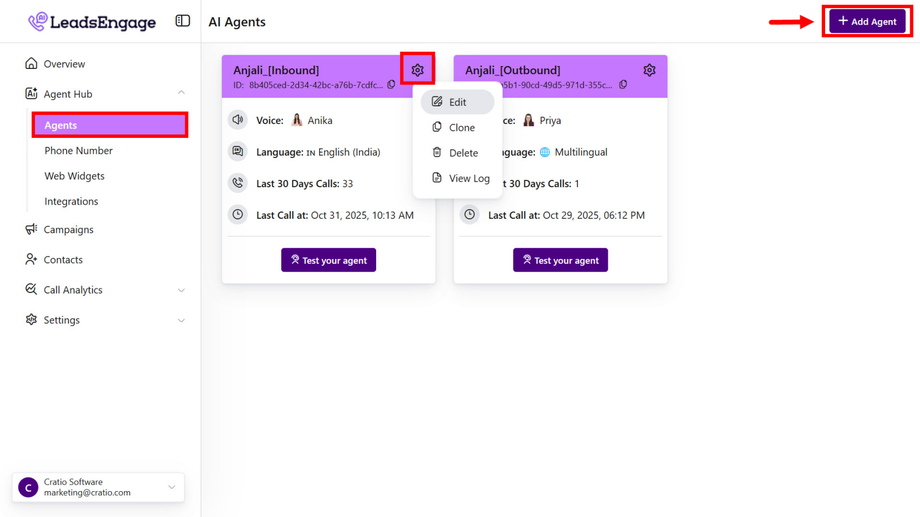 Tap the ⚙️gear icon to edit, clone, or delete agents