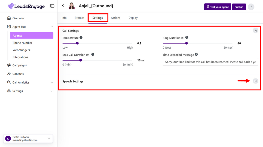 Control how the AI agent speaks and interacts during calls. Adjust the responsiveness, tone, and naturalness of the conversation for a better caller experience.