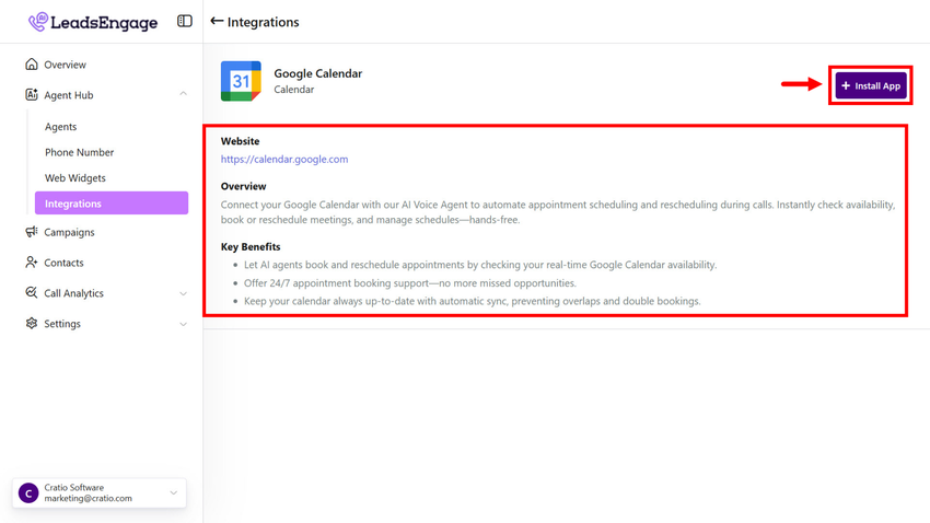 Navigate to Agent Hub > Integrations.